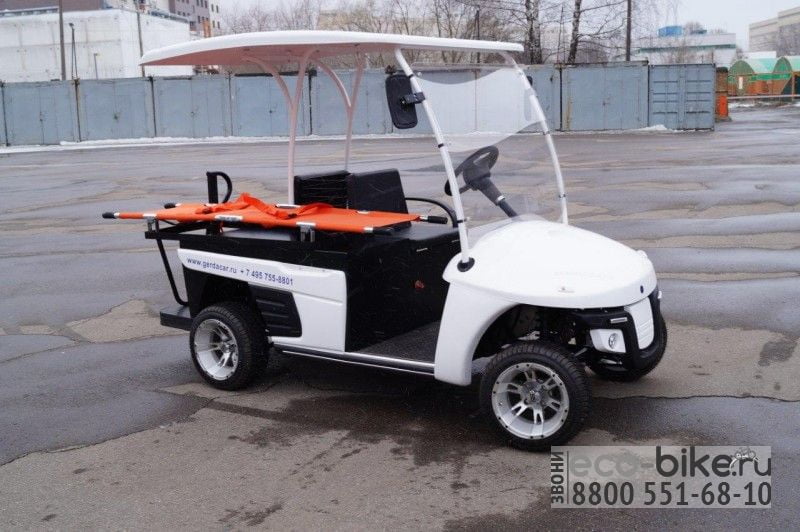 Специальная версия электромобиля для медиков. Кар незаменим при обслуживании крупных спортивных мероприятий. Небольшие размеры и маневренность его главный козырь. На любом стадионе или спортивной арене есть такой кар. Однако его применение будет актуально и в гостиничных комплексах и парках с узкими дорожками. Каждая секунда промедления при чрезвычайном проишествии имеет жизненно важную роль. Кар оборудован съемными носилками и нишей для медицинского чемодана. Опционально можно установить проблесковый маячок.